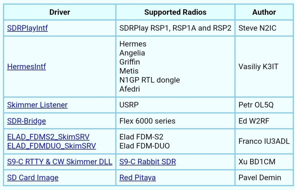 El skimmer server solamente es compatible con una lista determinada de SDRs. Podéis encontrar la lista de SDRs compatibles en su web.